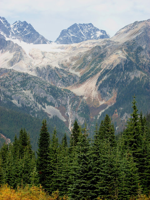At the pass summit. I think that is The Bonney Glacier - the sun was shining directly at me so not a great photo. This an absolutely stunning view on a clear day, driving West through the Pass.